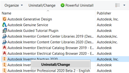 - With Autodesk Inventor Nastran 2022.x.x.xxx, the version details are visible within "view installed updates":