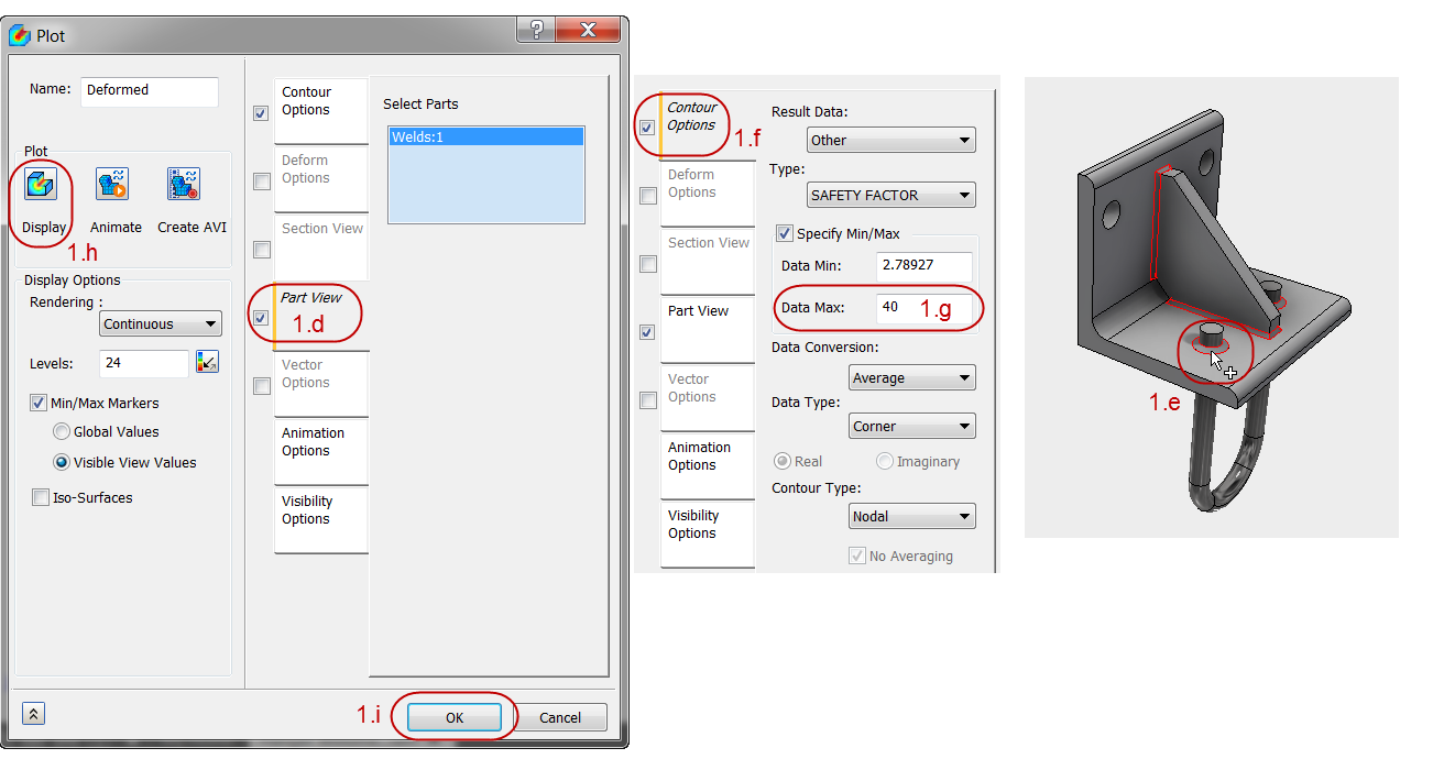 Display. Zoom in for a better view of the welds if desired. Your safety factor contour plot should be similar to the following image: