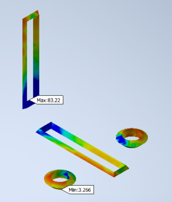 Tip: The actual maximum safety factor is many times greater than the minimum value, which skews the contour color towards red for most of the model. Reducing