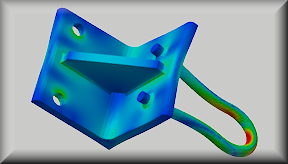 Linear Static Stress Analysis of a Welded Steel Hanger Determine the stress, displacement, and safety factor results of a welded steel hanger supporting a 6 KN downward load. |