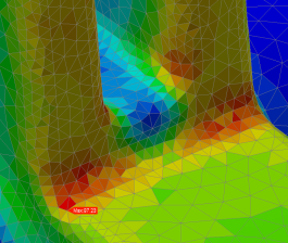 To view the exact value of a quantity on the model, click Probes from the Results panel of the ribbon. While the Probe tool is active, an information box displays the active scalar value where the cursor contacts the model: