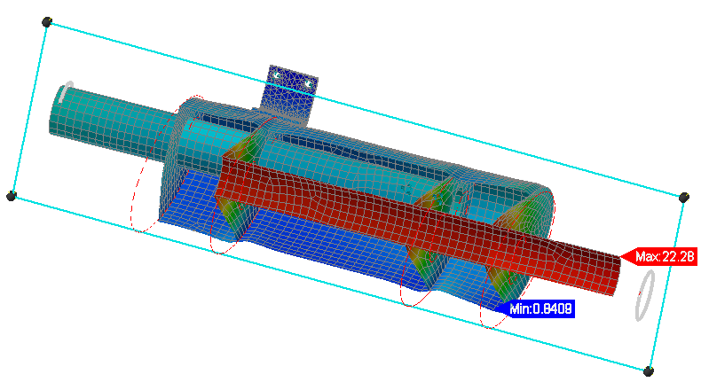 In this exercise we modified the geometry to drive the questionable modes out of the peak energy portions of the curve. This was done by increasing the thickness of the end caps and the brackets.