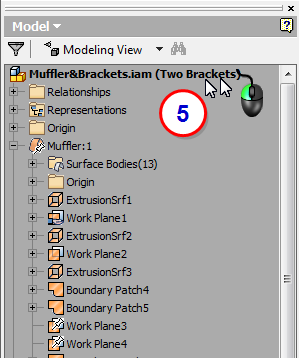 Start Autodesk Inventor, and open Muffler&Brackets.iam from the Section 23 - Muffler - Modal Avoidance folder of your training exercises folder.