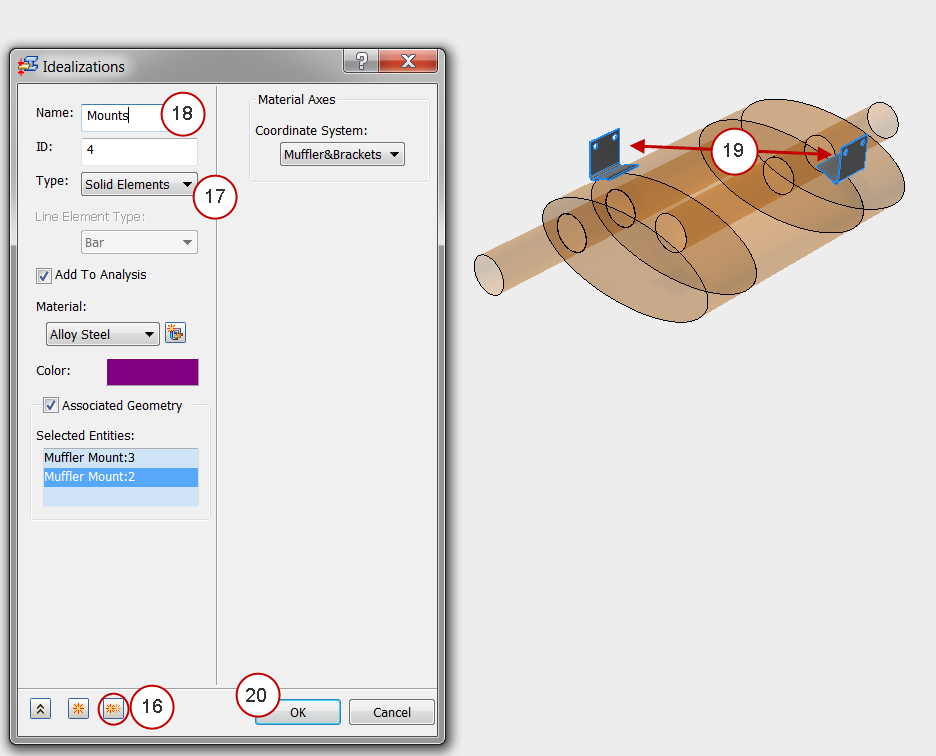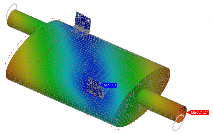 We'll use an Offset Bond contact between the brackets and the muffler shell to ensure that parts that don't touch are bonded together.