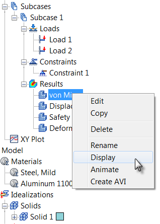 To plot von Mises stress, right-click .