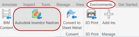 From the ribbon, click the Environments tab, and click Autodesk Inventor Nastran: