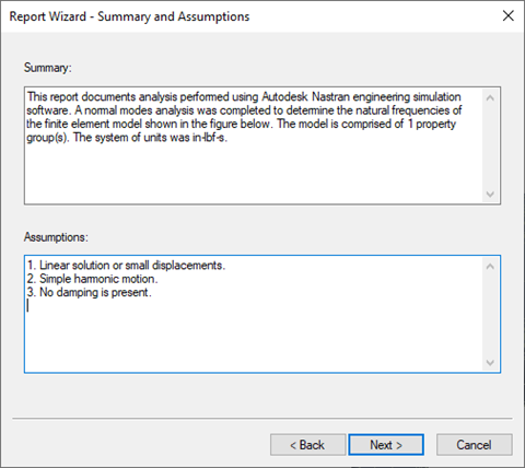 The Report Wizard – Summary and Assumptions dialog appears. Click Next >.