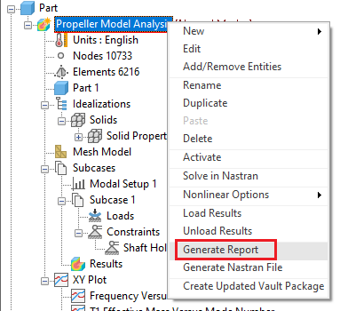 In the tree view, right-click on the analysis name, Normal Modes Analysis, and select Generate Report.