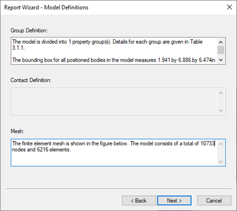 The Report Wizard – Model Definitions window appears. Click Next >.