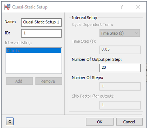 1. In the Assembly tree, under Subcase 1, right-click Quasi-Static Setup 1 > Edit, and set the following values: