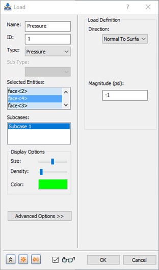 13. Change the Type drop-down to Pressure. Type -1 for Magnitude under Load Definition.
