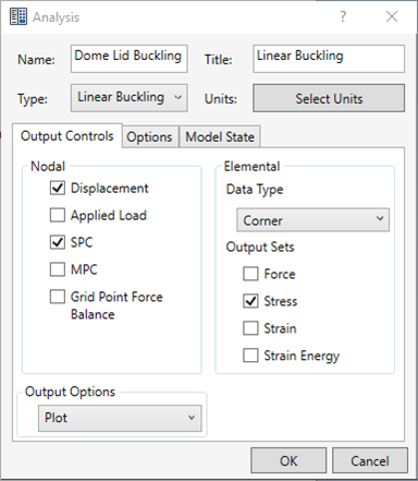 2. Type Dome Lid Buckling for Name, and type Linear Buckling for Title. Select Linear Buckling from the Type drop-down menu.