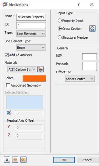 In the next few steps, the physical property is defined using the Cross Section, which allows you to give dimensions for beams and bars.