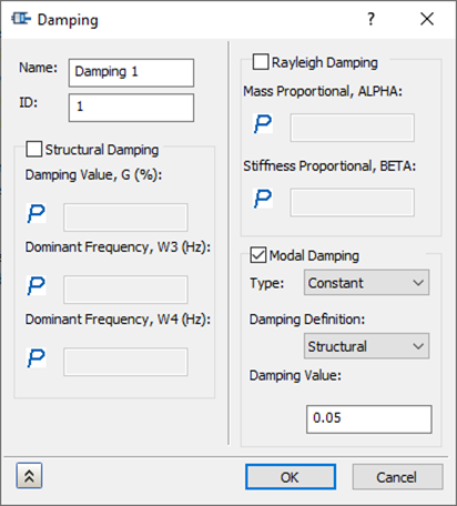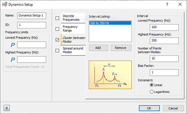 For modal frequency response solutions, the dynamics setup options are a little different. In this particular analysis, you are going to only be interested in the first flexural mode of the structure do to the frequency dependent loading.