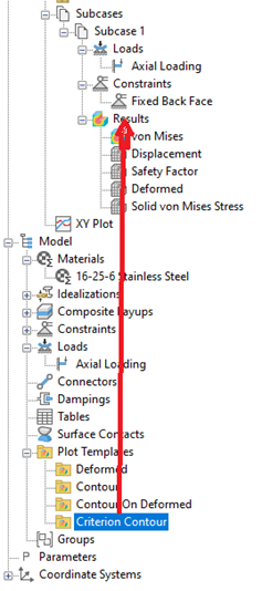 SOLID VON MISES STRESS, then on the Visibility Options tab, turn off
