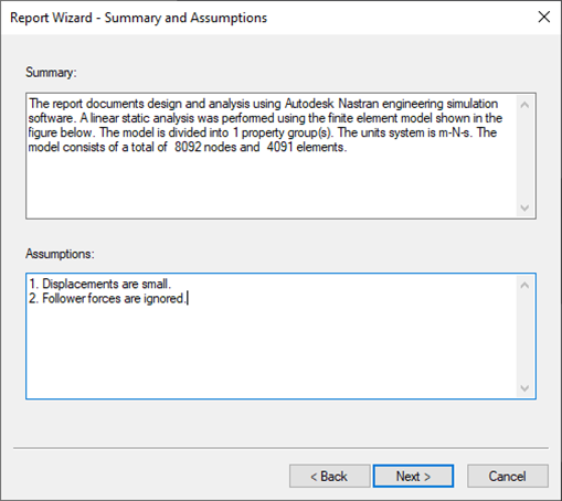 Report Wizard – Summary and Assumptions dialog appears. Under the