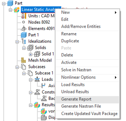 In the tree view, right-click on the analysis name,