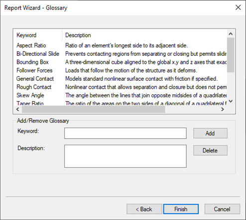 Report Wizard – Glossary dialog appears, and then click