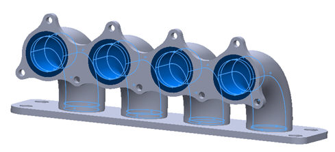 Type drop-down menu and select the inside surfaces for Flange 2 and all four tubes that make up the hole. The surfaces are highlighted in blue in the image below.