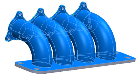 - Select one of the sides that make up the thickness of Flange 2 and select all the tangent surfaces to the surfaces already selected. Continue to select the surfaces of Flange 1 and 2 facing the tubes, as well as the exterior surfaces of the tubes. The surfaces that should be selected are shown below.