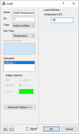 Temperature in the Load Definition section. This defines the initial temperature of the body and you are assuming that it is the temperature of the ambient air surrounding it.