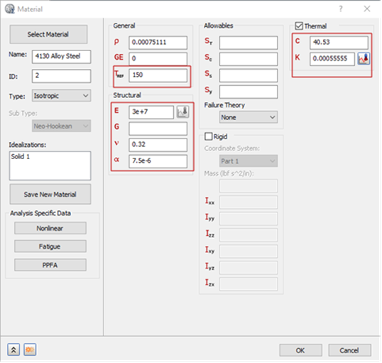 Structural, enter the properties shown in the image below. They will be used in the Linear Static Thermal Stress Analysis.