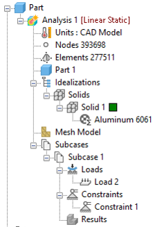 All the entities that you will be creating will also appear in Model Entity list. This list will expand as the modeling progresses. The Model Entity list provides a means of easily applying entities to other subcases as well.