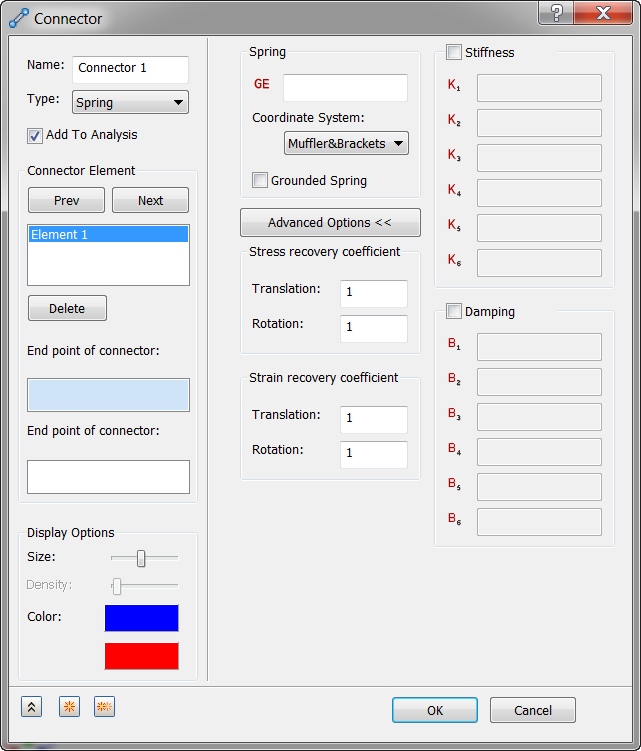 - Connector Element: Allows multiple spring elements to be defined within the current