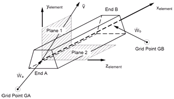 The element z-direction is defined by the cross product of these two vectors. Note that the element zx plane defines plane 2 and element xy defines plane 1.