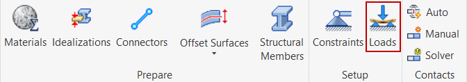 - The following geometric entities are supported for application of loads. However, if a particular load cannot be applied to a particular entity, you will be unable to select that particular entity.