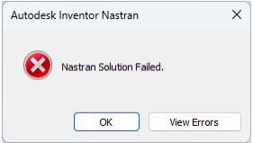 Use the Error List to view all errors and/or warnings after the analysis has been solved. The Error List can be accessed from the Solve panel on the Inventor Nastran ribbon.