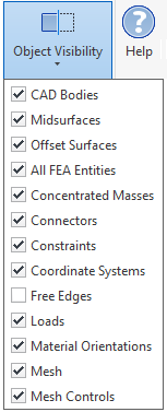 - This option controls visibility of the finite element mesh. When displaying results contours, this command is equivalent to the