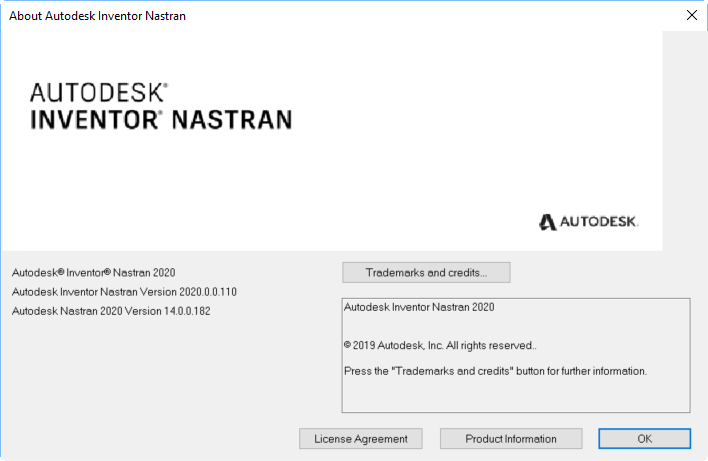 Autodesk Inventor Nastran version and other details, as shown in the image below.