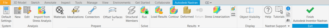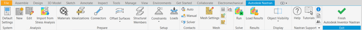 The other features available in the Autodesk Inventor Nastran ribbon bar are as follows: