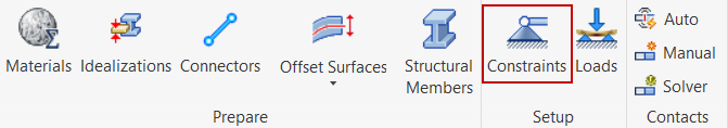 Click Constraints in the Setup panel of the Autodesk Inventor Nastran ribbon tab: