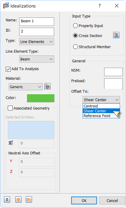 - Shear Center: Will mesh the selected structural members to the offset shear center.