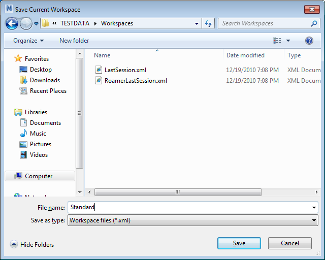 In the Save Current Workspace dialog box, enter a name for the new workspace. You can also select the name of an existing workspace to overwrite it with your modified configuration.