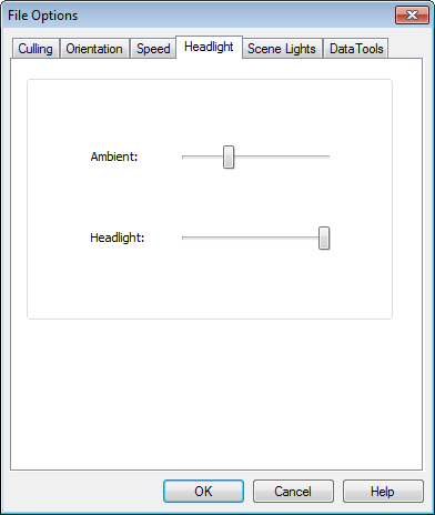 You can customize the Head Light properties in the File Options dialog box (Home tab > Project panel).