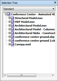 The Selection Tree is a dockable window, which displays a variety of hierarchical views of the structure of the model, as defined by the CAD application in which the model was created.