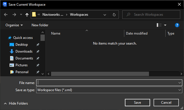 In the Save Current Workspace dialog box, enter a name for the new workspace. You can also select the name of an existing workspace to overwrite it with your modified configuration.