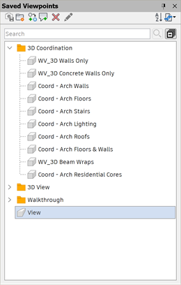 The Saved Viewpoints window is a dockable window that enables you to create and manage different views of your model so that you can jump to preset viewpoints without having to navigate each time to reach an item.