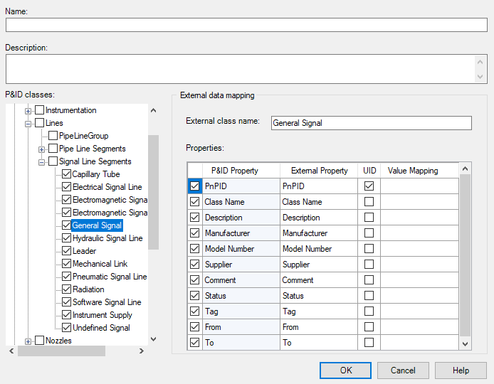 Modifies the name, description, selections and mappings for P&ID objects and properties.