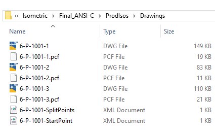 After you create an isometric drawing, a separate PCF is created along with its matching DWG file in the same folder.