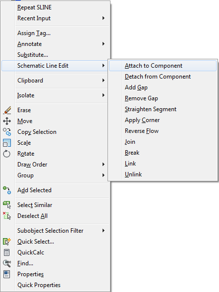 For example, when you right-click a schematic line, a shortcut menu is displayed for quick access to relevant schematic line editing tasks.