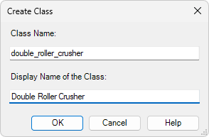 5. In the Create Class dialog box, enter a class name and a display name (if necessary) for the new class definition. For example, customvalve and Custom Valve.