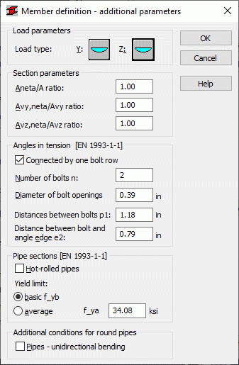 - Conditions for round pipes. If the Pipes - unidirectional bending option is selected, then, for this type of section, a bending moment equal to a sum of moments acting along axes Y and Z is calculated; the resultant moment is the basis for member design