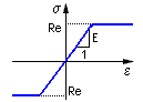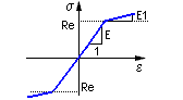 If the elastic-plastic model with hardening is selected, the E/E1 field becomes available in which you can enter a value for the plastic hardening parameter. This parameter is defined as a quotient of the material stiffness value (Young's modulus E) in the elastic range and the stiffness in the plastic range (the linear material model is assumed).