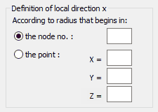 - Polar. If selected, the local system of elements is adopted according to the globally user defined polar system for all panels. Point with given coordinates or node number determine the system beginning.