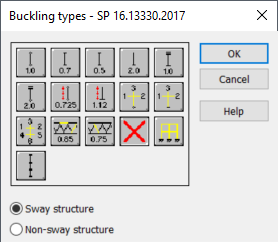 Use this dialog to define buckling length of members for the Russian code SP16.13330.2017.
