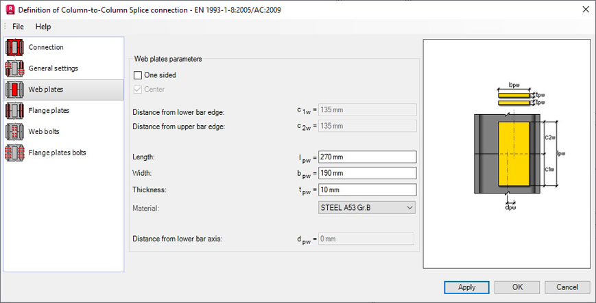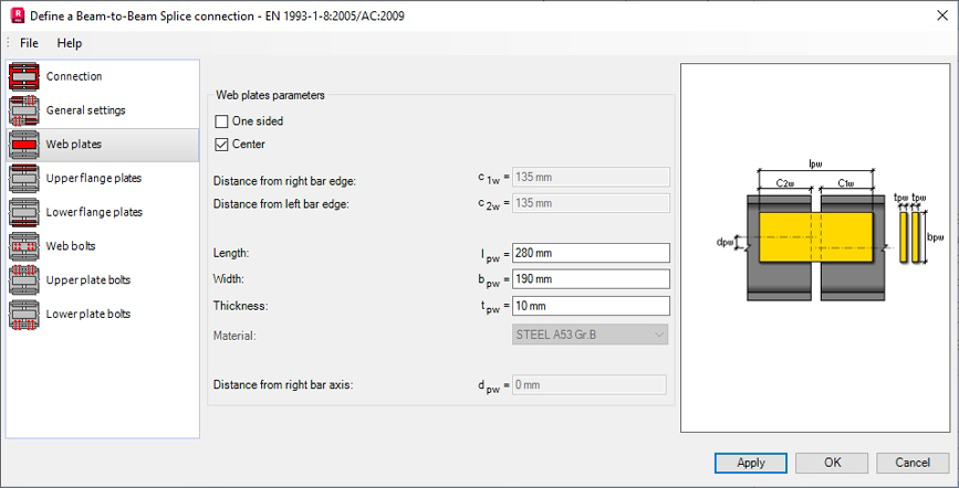 Use the Web plates panel to define the geometric dimensions of the plates on web bars.
